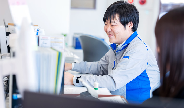 来店されるお客様への対応、電話対応、見積もりや伝票処理を行っています。